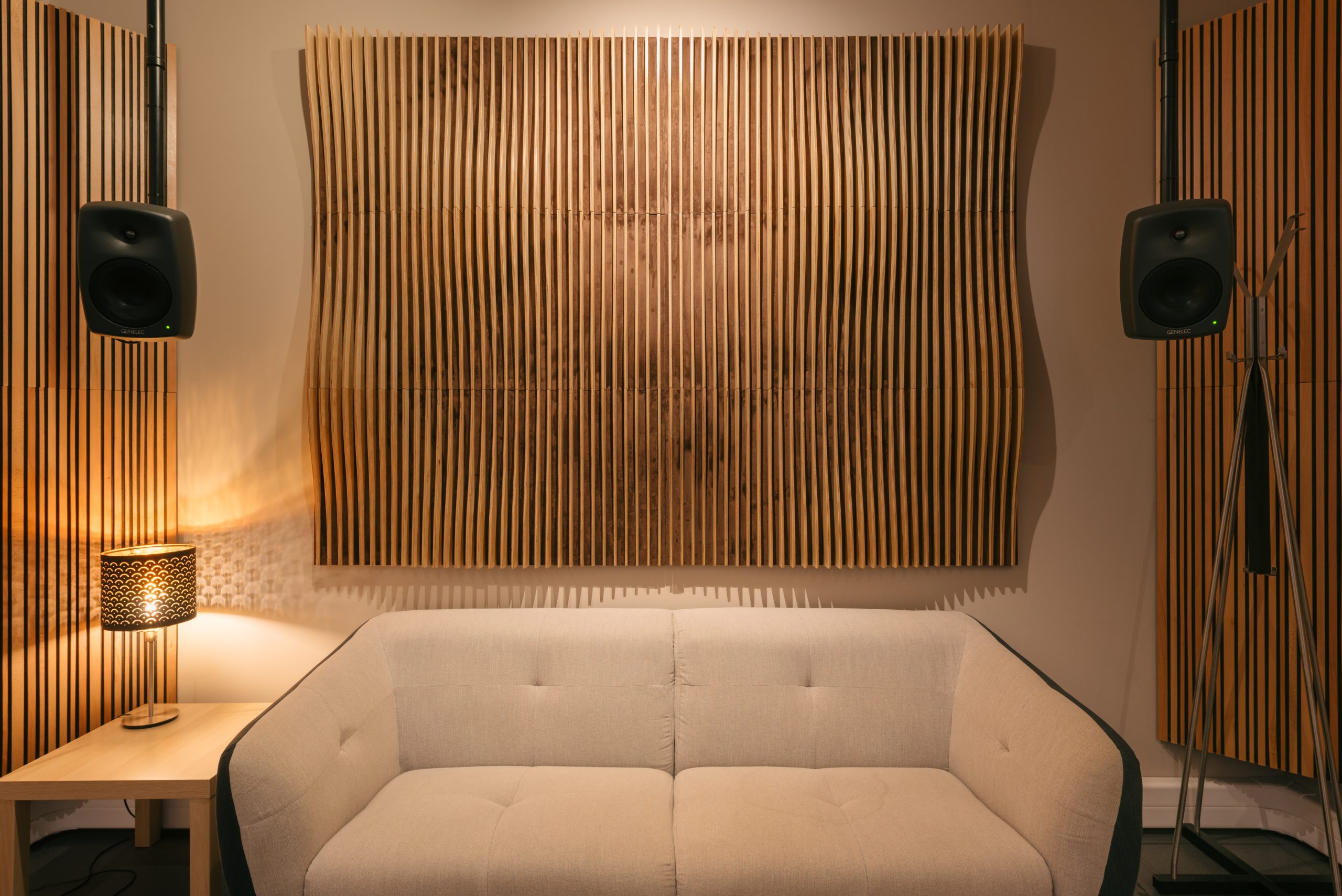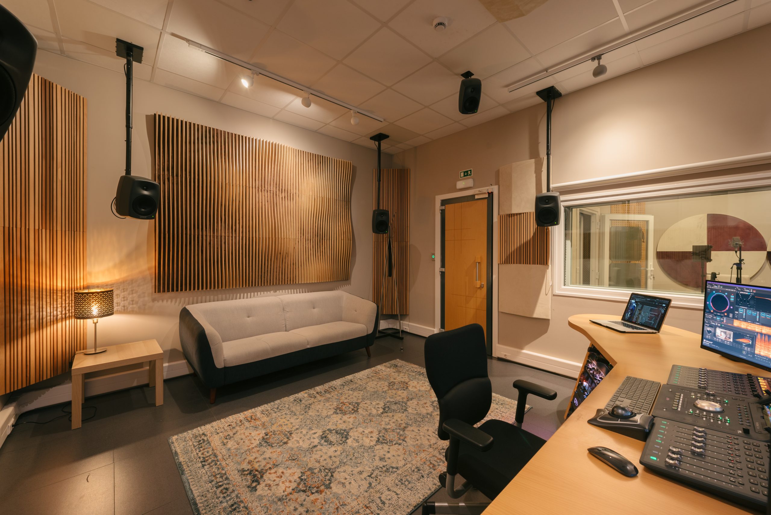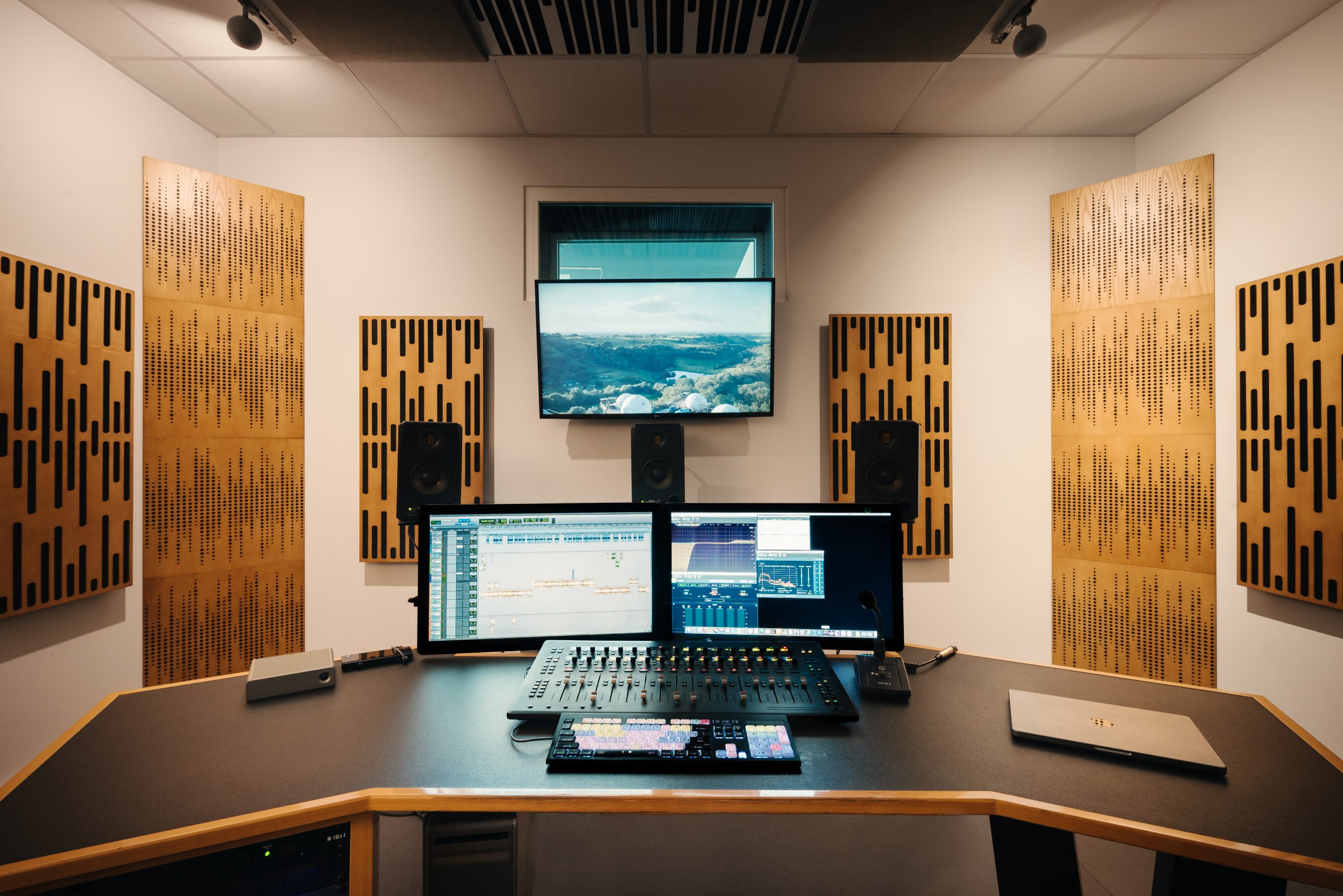 Construído em colaboração com a nossa parceira Audio Lisbon, o Estúdio A, com dimensões de 5,70×4,20×3,00 metros (CxLxA), está equipado com um sistema de monitores áudio Genelec SAM e foi calibrado pela Dolby para mistura de música e Home Entertainment, em configuração Dolby Atmos 7.1.4.